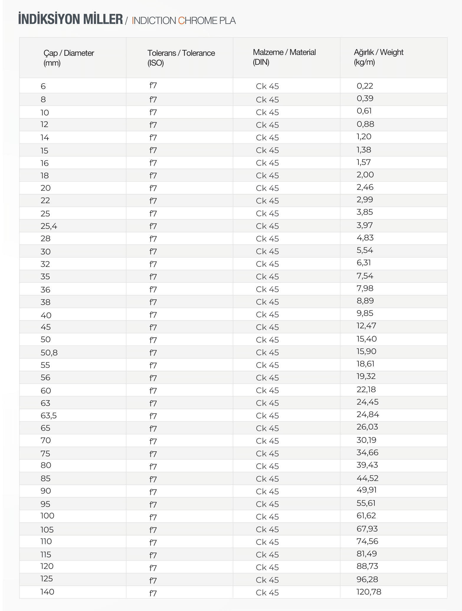 “İNDİKSİYON SERTLEŞTİRİLMİŞ VE KROM KAPLAMALI ÇELİK BORULAR” için yorum yapan ilk kişi siz olun